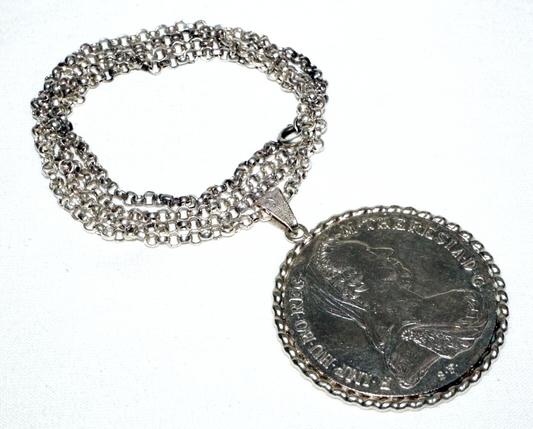 Vintage Egyptian Silver Necklace w. 1780 Austrian Silver Coin Pendant (KoS) L9