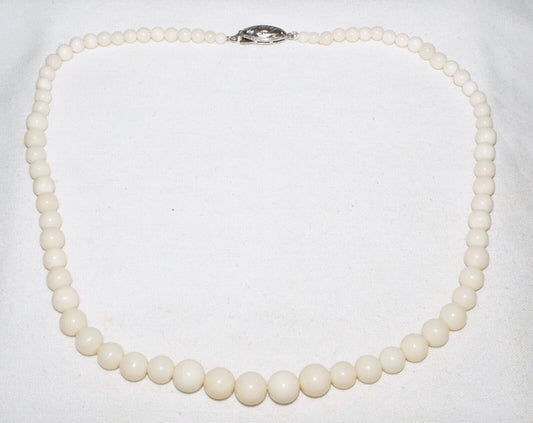 Vintage Chinese White Coral Bead Choker Necklace w. Silver Clasp (InS)L6