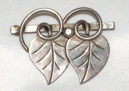 Vtg. Georg Jensen USA La Paglia Sterling Silver Double Leaf Brooch Pin (QuC) 24