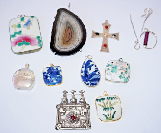 10x Vintage & Antique Chinese Silver Chard & Crystal Mixed Pendant Lot (Yam)#17