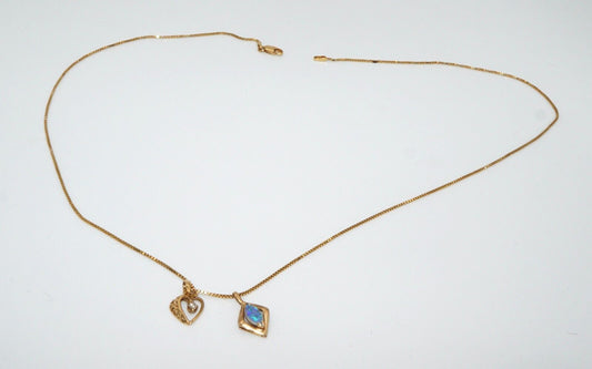 14k Yellow Gold Box Chain Necklace 20" & 2 Pendants 1 w Opal & 1 w Diamond (NeW)