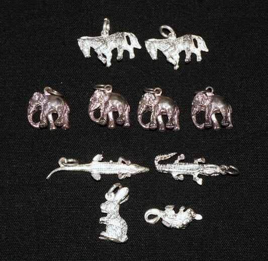 10Pc Sterling Silver Mini Animal Charm Pendants Crocodile Elephant Horse (NiD)