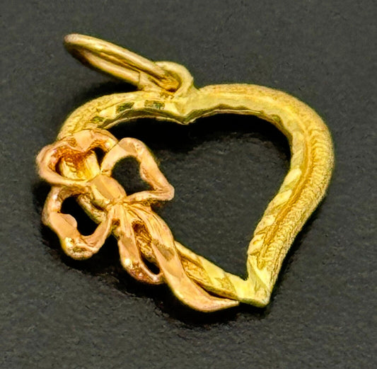 14k Multi-Toned Gold Heart Love Ribbon Pendant (MeC)