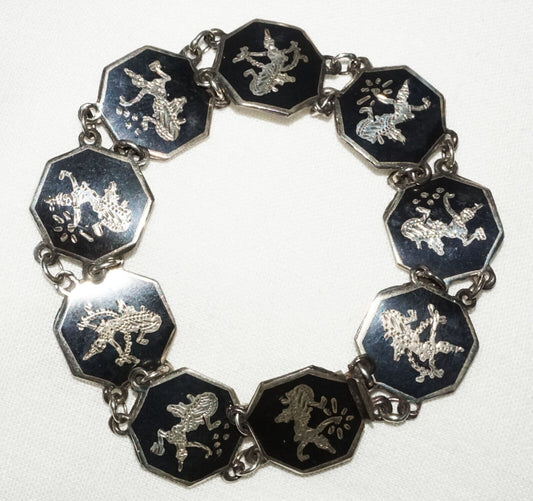 Vintage Thai Silver & Enamel Niello Ware Bracelet w. Dancer Motifs (WoJ)