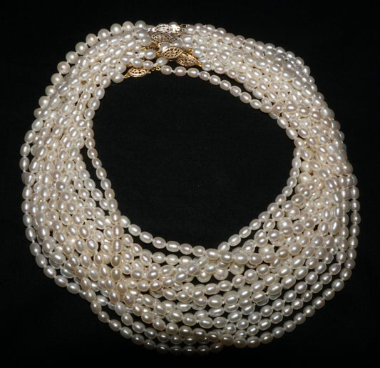 14Pc Vintage Pearl Choker Necklaces w. Filigree Silver, Gold & G.P. Clasp (AHB)1