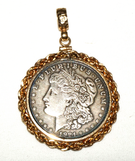 Vintage US Gold Plated Coin Bezel Pendant w. 1921 Morgan $1 Silver Coin (MuS)