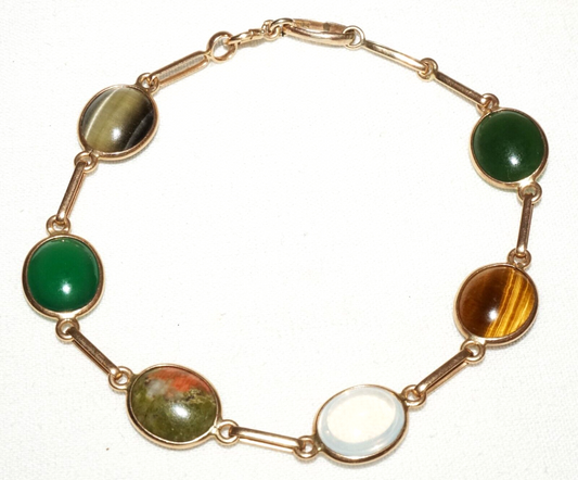 Vintage UK 9k Yellow Gold Link Bracelet w. 6x Gemstone Accents (KoS) L15