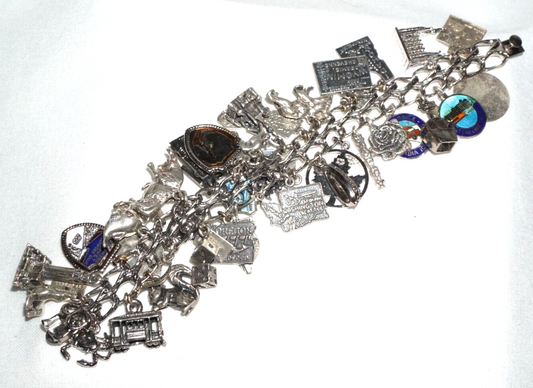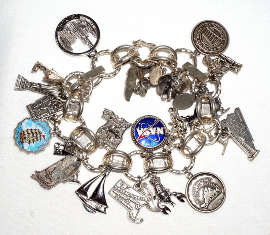 Vintage Sterling Silver Charm Bracelet w. 40x Travel & US State Charms (BrM)#6