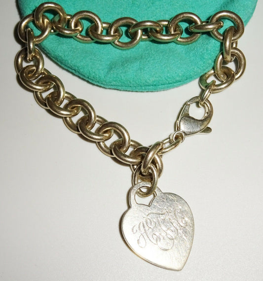 Vintage US Sterling Silver Heart Tag Oval Link Bracelet by Tiffany & Co. (HoP)