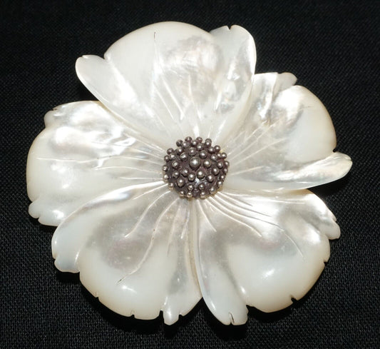 Vintage Sterling Silver Mother of Pearl Flower Motif Brooch Stephen Dweck (PaS)