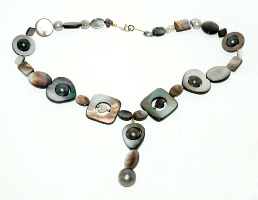 Vintage Tahitian South Sea Pearl & Mother of Pearl Bead Necklace (LeP)#2