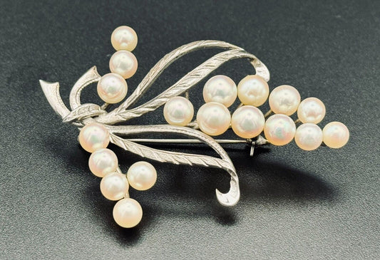 Vintage Sterling Silver Pearl Brooch with 18x Pearl 6mm Accents (KiL)