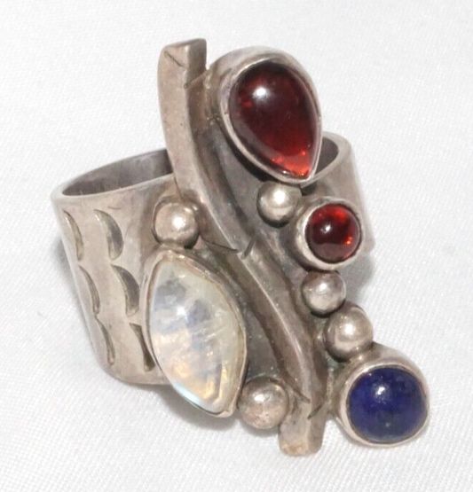 Vintage Sterling Ring Accented w Tanzanite, Garnet & Moonstone Adjust Sz (LoC)L2