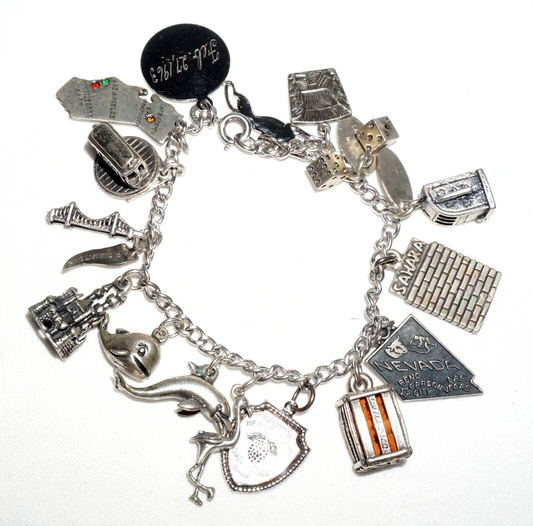 Vintage Sterling Silver Charm Bracelet w. 16x Travel & City Charms (BrM)#6