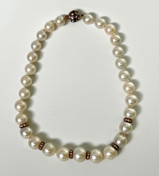 Vintage Simulated Pearl & Rhinestone Statement Necklace 17" (LeD)