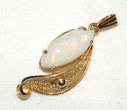 Vintage Modernist Style Gold Plated Pendant set w. Marquis Cut Opel Cab (OdC)