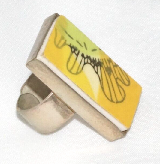 Vintage Silver Plated Abstract Sunflower Petal Tile Ring Adjustable Size (LoC)L2