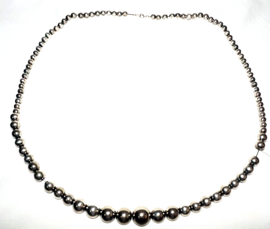 Vintage Silver Colored Graduated Hollow Bead Necklace w. Clasp (KoS) L9