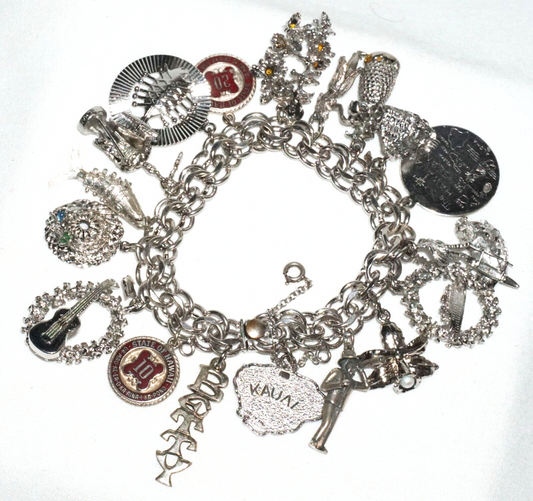 Vintage Sterling Silver Charm Bracelet w. 18x Hawaii Themed Charms (BrM)#6