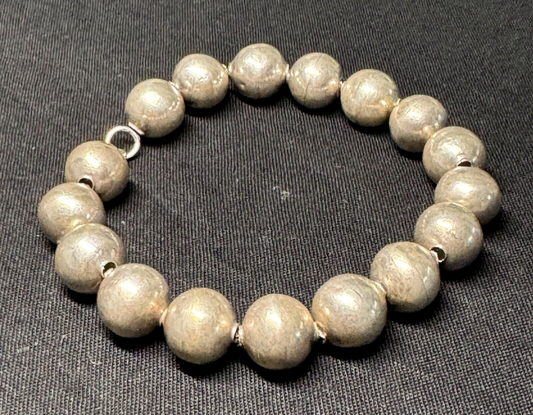Vintage Silver Dark Tone Bead Minimalist Bracelet w Hook Clasp 7.75 inches (QuC)