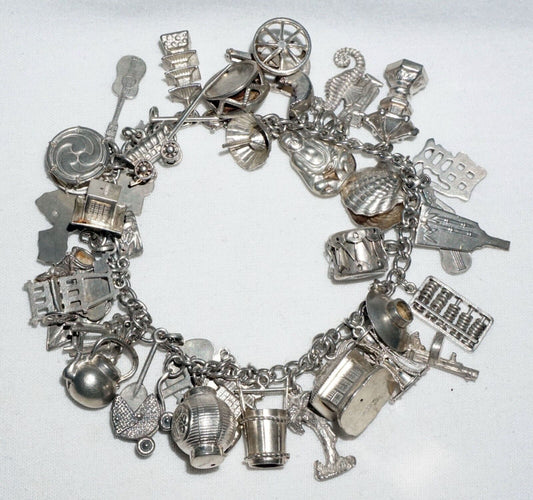 Vintage Sterling Silver Charm Bracelet w. 40x World & Travel Charms (BrM)#6
