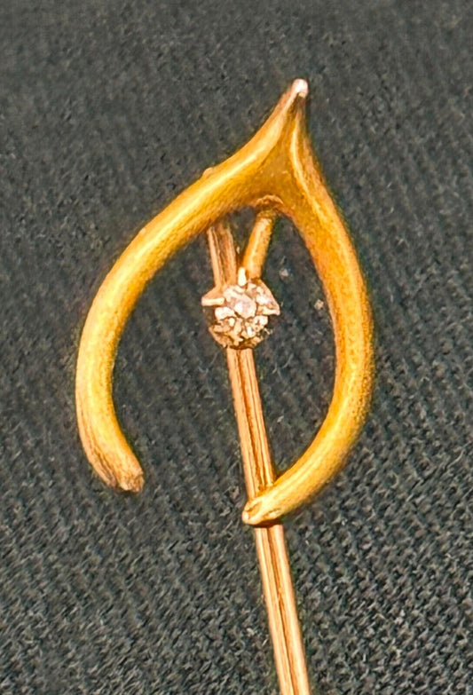 14k Yellow Gold Stick Pin with Diamond Accented Wish Bone (McC)