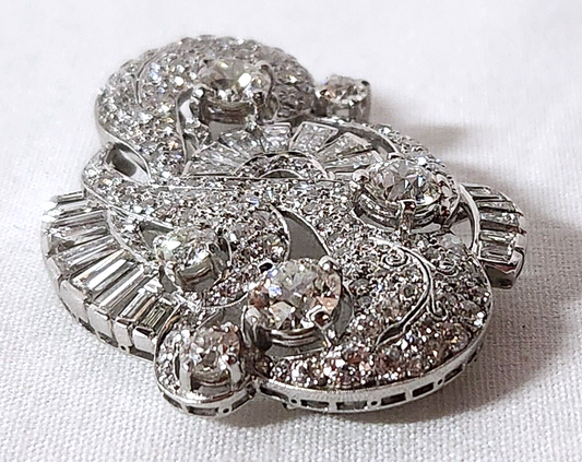14 K. White Gold Diamond Filigree Brooch Total Diamonds Approx. 10ct. (ChR)