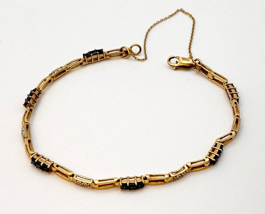 14k Yellow Gold Interlocking Bracelet w Blue Topaz & Melee Diamond Accents (NeW)