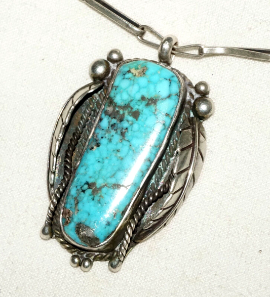 Vintage S.W. US Sterling Silver Necklace & Pendant set w. Turquoise Accent (BeM)