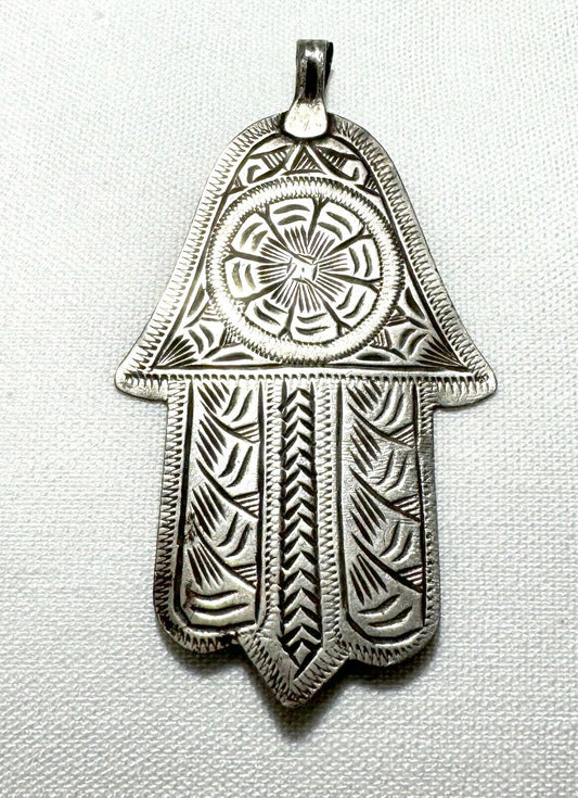 Vintage Unmarked Silver Hamsa Moroccan Berber Talisman Pendant (LoC)23