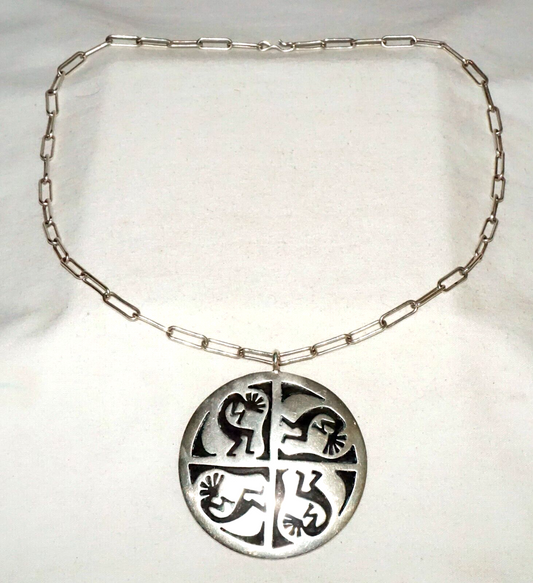 Vtg. S.W. US Sterling Silver Necklace & Pendant Kokopelli & Man in Maze (BeM)