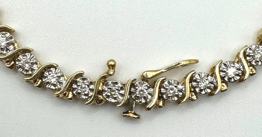 14K Yellow Gold 33x Diamond Tennis Bracelet Total 1 ct. w Box Safety Clasp (MeK)