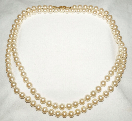 Vintage Costume Faux Pearl Necklace 40" w. Gold Platted Clasp (FeD)#3