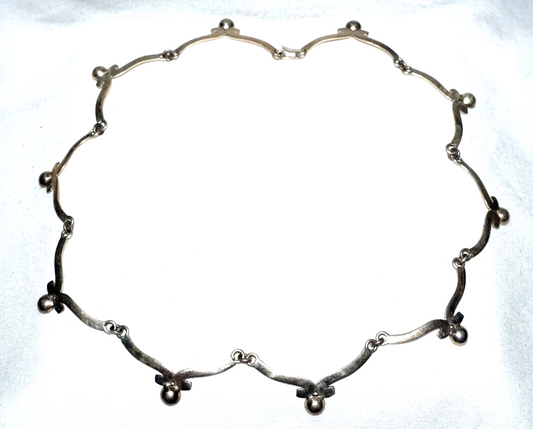 Vintage Mexican Sterling Silver Sectional Choker Necklace signed (LeS)L24