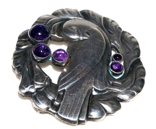 Vtg Denmark Sterling Silver & Amethysts Dove Brooch #123 Georg Jensen (KoS) L10