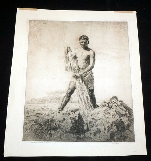 1928 Hawaii Etching Print Fisherman by John Melville Kelly (1879-1962)(Kel)