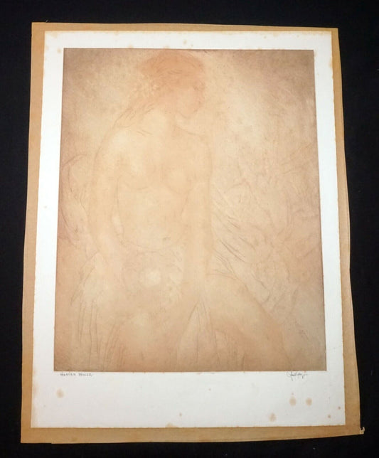 1930s Hawaii Color Etching Print Hawaiian Dancer by John Melville Kelly (Kel)