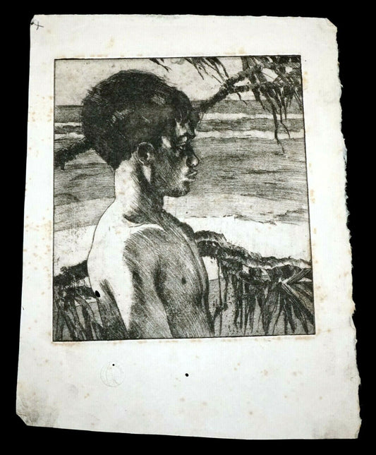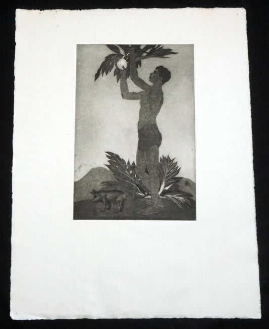 1939 Hawaii Etching Aquatint Print Breadfruit Boy by John Melville Kelly (Kel)