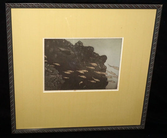 1940 Hawaii Aquatint Print Black Point Reef Fish by Nils P Larsen (1890-1964)(+)