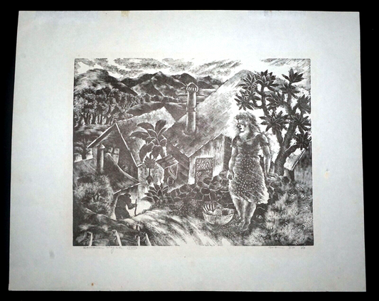1940 Hawaii Linocut Print Hawaiian Wayside by Isami Doi (1903-1965) (LLA)