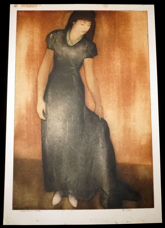 1940 Hawaii Aquatint Print Black Holoku Hawaii by John M. Kelly (1879-1962)(+)