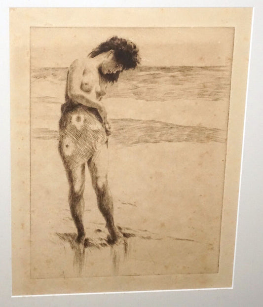 1937 Hawaii Etching Print Nanea on the Beach by John M. Kelly (1879-1962) (+)