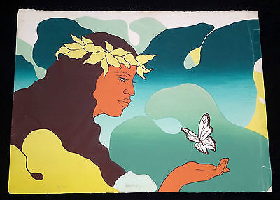 1970s HAWAII SILKSCREEN PRINT 5/250 "WOMAN & BUTTERFLY" by JIM WALSH (Ger)
