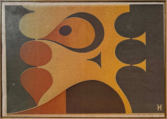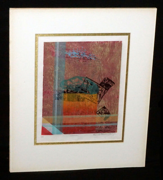 Mid-Century Modern Block Print "Yin-Yang" by Hon Chew Hee 9/14 (KuK)