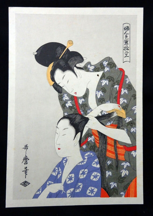 Vintage Japanese Woodblock Print Repro Woman Combing Hair by Utagawa (Fuj)