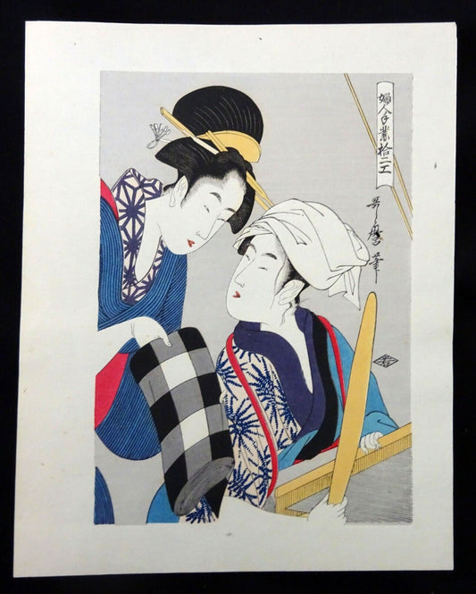 Vintage Japanese Woodblock Print Repro Woman Weaving by Utagawa (Fuj)