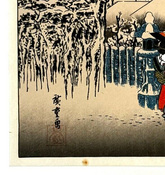 Vintage Japanese Woodblock "Gion Shrine in Snow" By Utagawa Hiroshige (KiL)