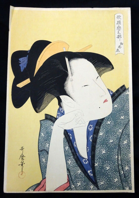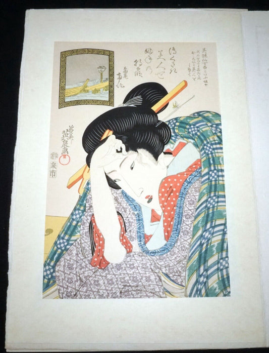 Vintage Japanese Woodblock Repro Print A Brooding Love by Kitagawa Utamaro (OdC)