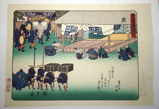 Vintage Japanese Woodblock Repro 53 Stations #48 Seki Tokaido by Hiroshige (OdC)