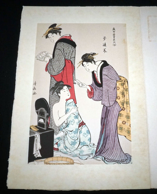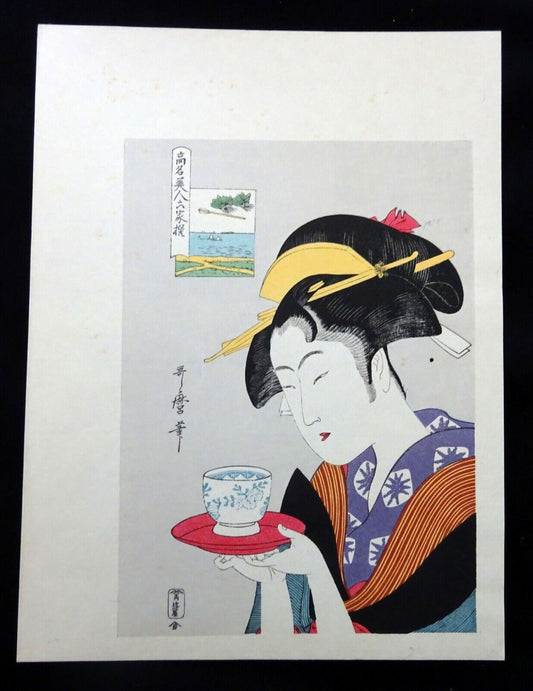 Vintage Japanese Woodblock Repro Print Tatsumi Geisha by Torii Kiyonaga (OdC)